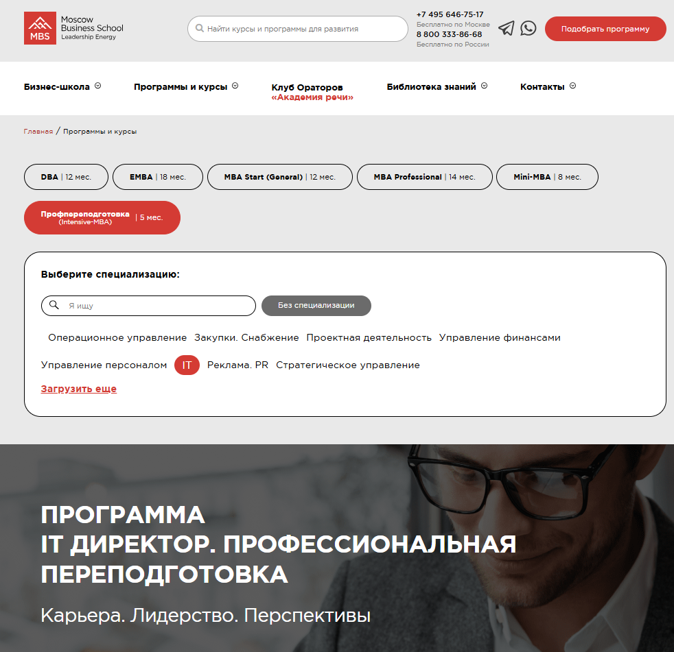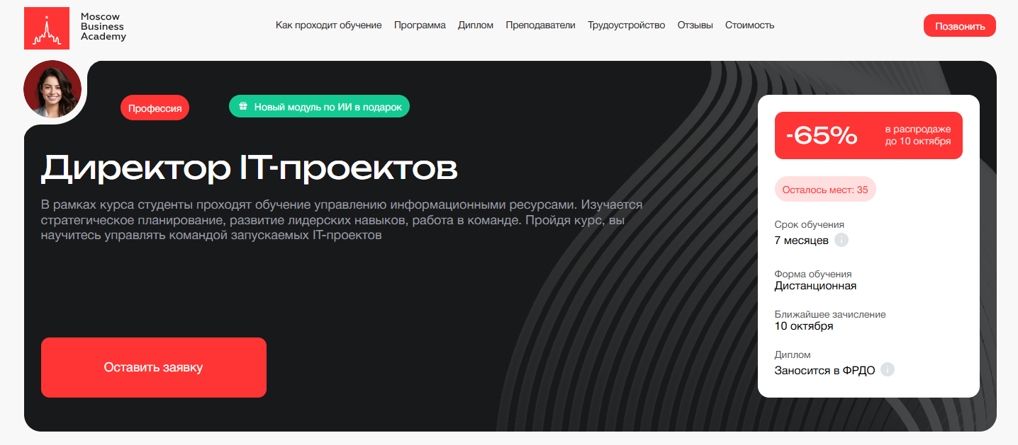 - Директор IT-проектов – Moscow Business Academy (по промокоду onlinekursy скидка 10%)