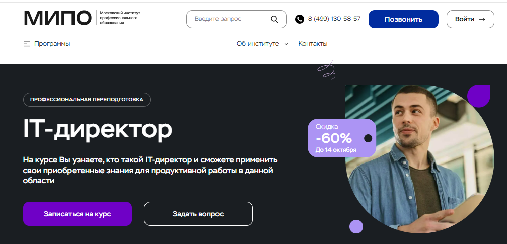 - IT-директор – МИПО (по промокоду onlinekursy действует скидка 10%)