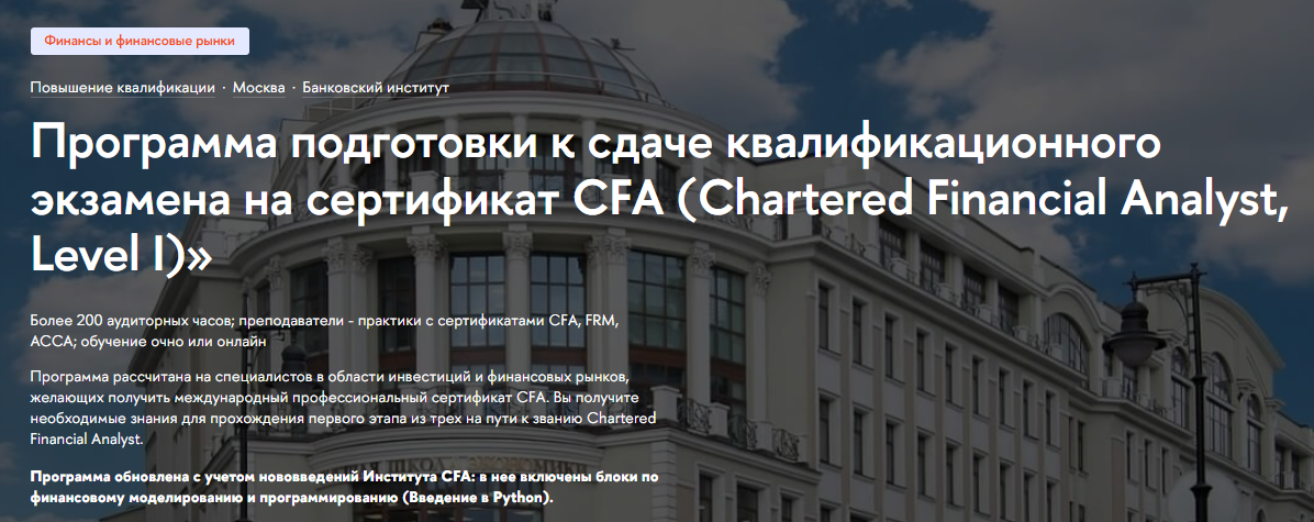 - Программа подготовки к сдаче квалификационного экзамена на сертификат CFA (Chartered Financial Analyst, Level I) — НИУ ВШЭ