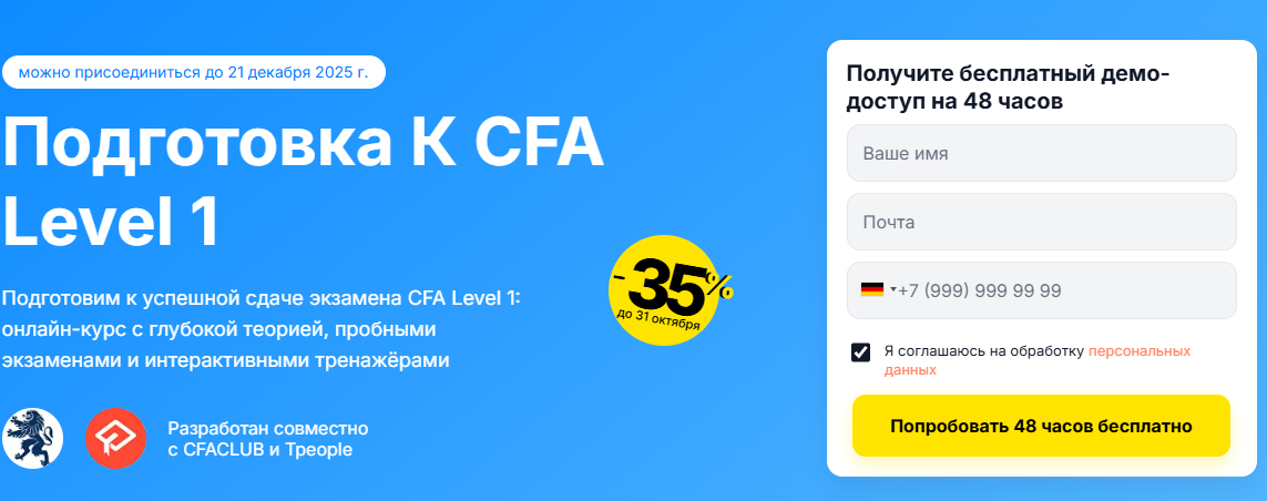 - Обновлённый курс с учётом актуальных изменений CFA Institute