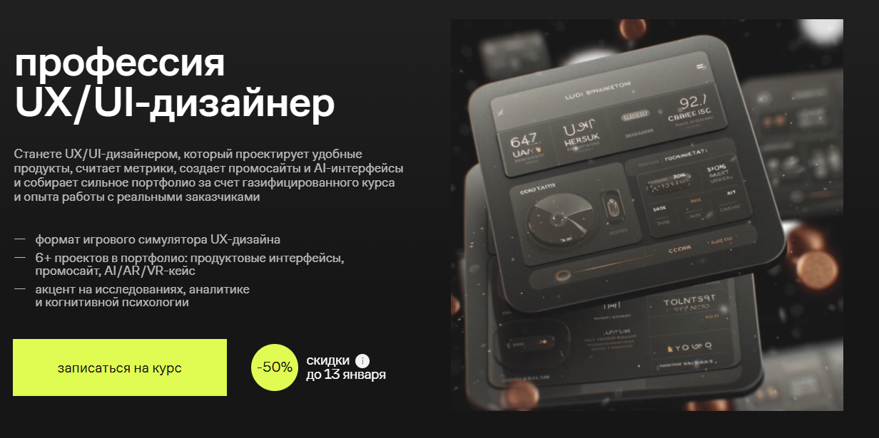 • Для кого подходит курс: новичкам в дизайне, специалистам, желающим освоить разработку интерфейсов и проектирование пользовательского опыта, людям, стремящимся получить практические навыки и начать карьеру в сфере.