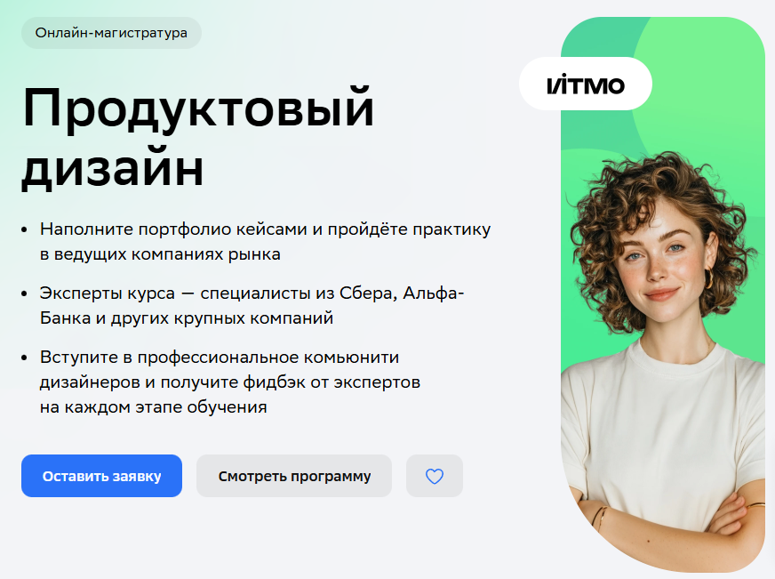 • Для кого подходит: абитуриентам с любым образованием, желающим освоить профессию в сфере дизайна цифровых продуктов, разработки интерфейсов и UX/UI, включая новичков без профессионального опыта.