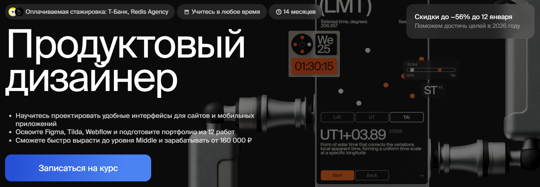 • Бонусы: портфолио (наполнение и оформление), no-code инструменты (Tilda, Webflow), нейросети в дизайне.