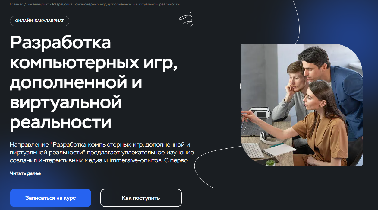 Программа бакалавриата ориентирована на подготовку специалистов для игровой индустрии и сферы разработки цифровых проектов. В процессе обучения студенты изучают игровые механики, основы геймдизайна и базовые принципы создания интерактивного контента. Учебный процесс построен так, чтобы развивать навыки программирования и работы с профессиональными инструментами, используемыми в игровых студиях. Студенты направления получают профильное образование и формируют портфолио игровых проектов. Обучение проходит дистанционно, поэтому доступ к лекциям и материалам сохраняется в личном кабинете до завершения обучения. В рамках программы студенты получают знания о процессах разработки, управлении игровым процессом и создании графики и звука. Особое внимание уделяется техническим навыкам и практическим аспектам разработки компьютерных проектов. Выпускники получают дипломы и могут продолжить карьеру в сфере дизайна и разработки или работать над собственными проектами. Подготовка направлена на достижение профессионального уровня и развитие профессиональных навыков для работы в индустрии развлечений и медиа.