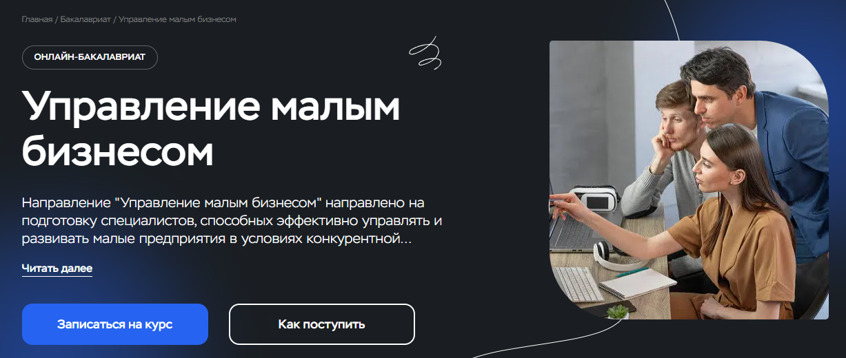 - Программа высшего образования по направлению «Менеджмент» с акцентом на малое предпринимательство.