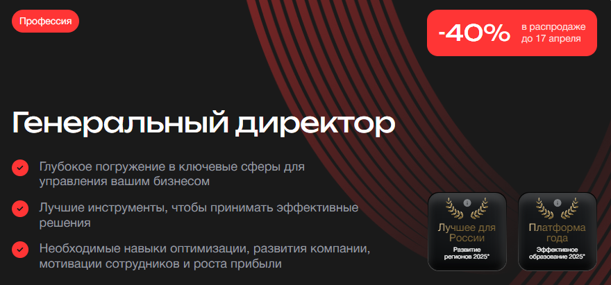 - Генеральный директор – Русская Школа Управления (по промокоду onlinekursy20 скидка 20%)