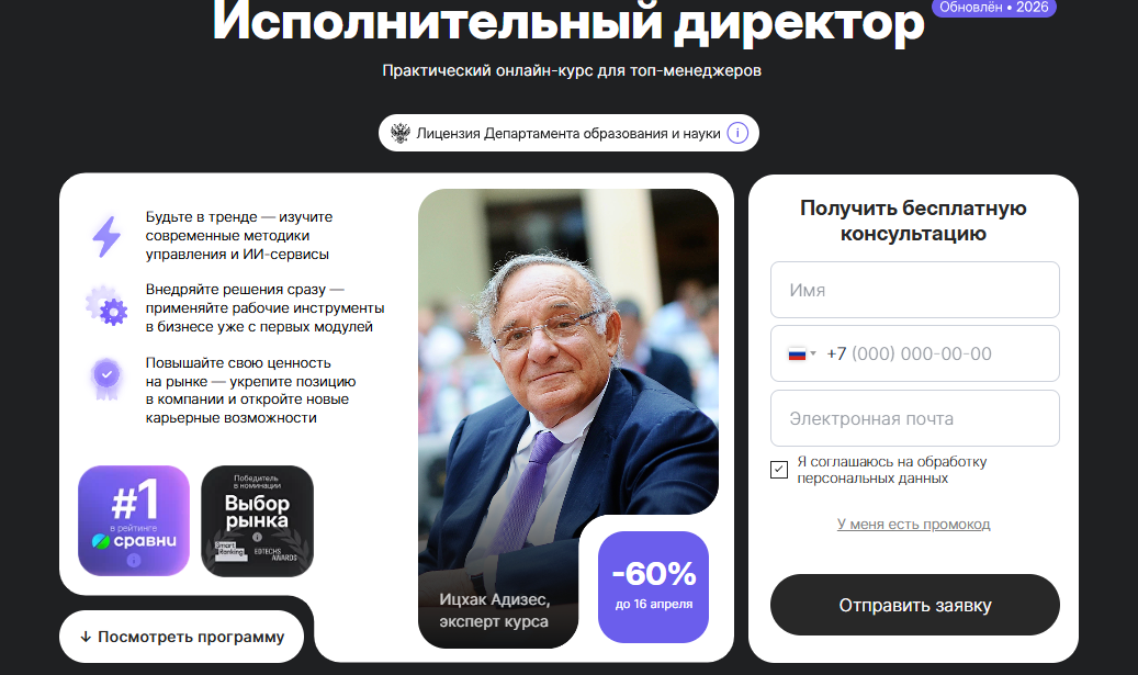 - Исполнительный директор — Академия Эдюсон (по промокоду RATING5 скидка 5%)