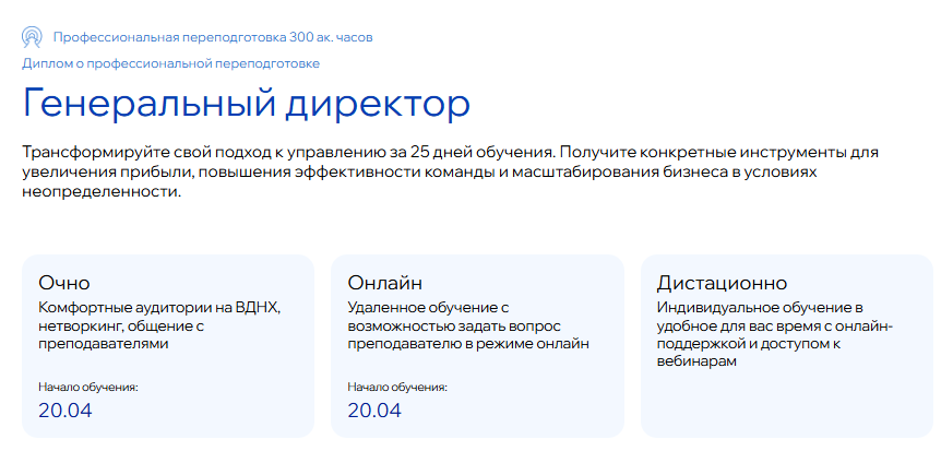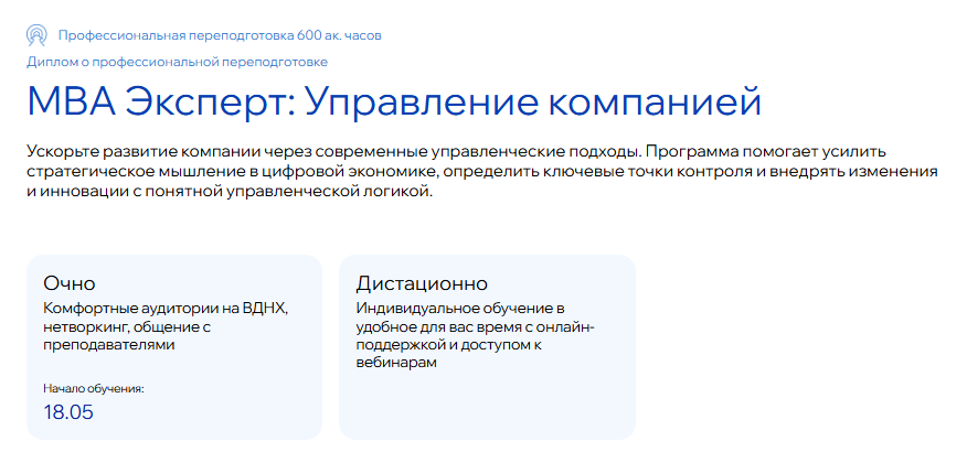 - Дистанционный формат без жестких сроков обучения, который удобно совмещать с управленческой деятельностью.