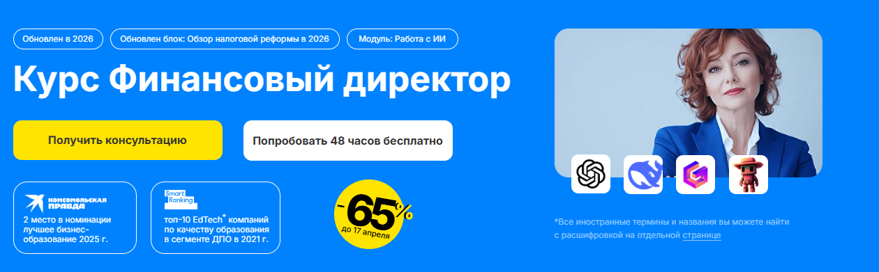 - Финансовый директор — SF Education(по промокоду onlinekursy скидка 15%)