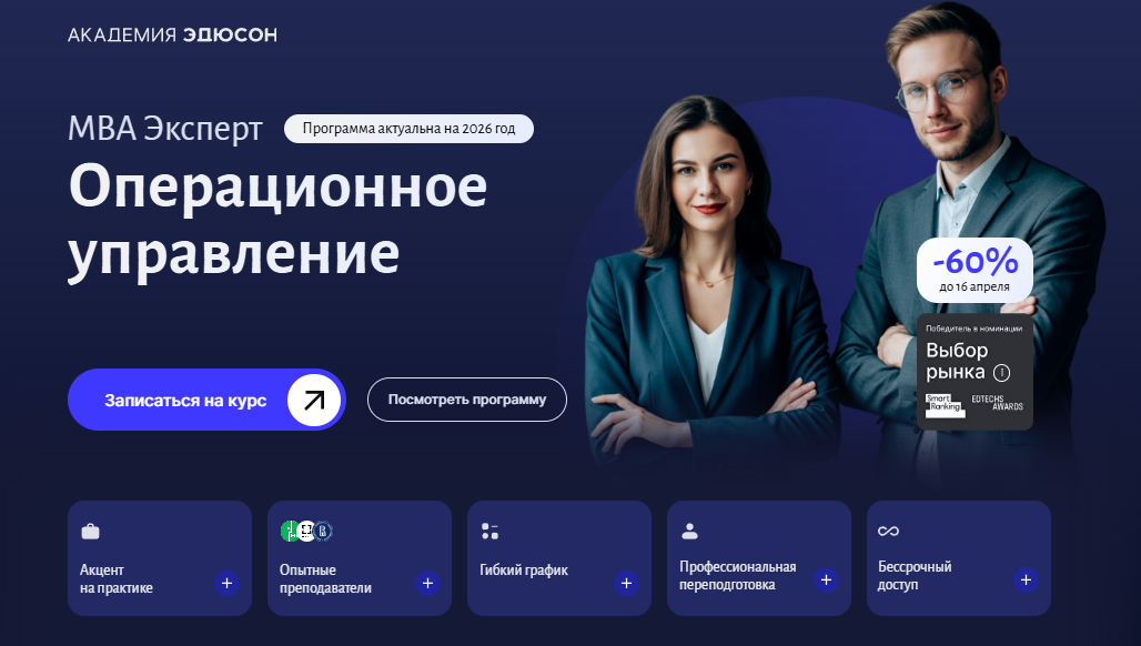 - MBA Эксперт: Операционное управление — Академия Эдюсон (по промокоду RATING5 скидка 5%)