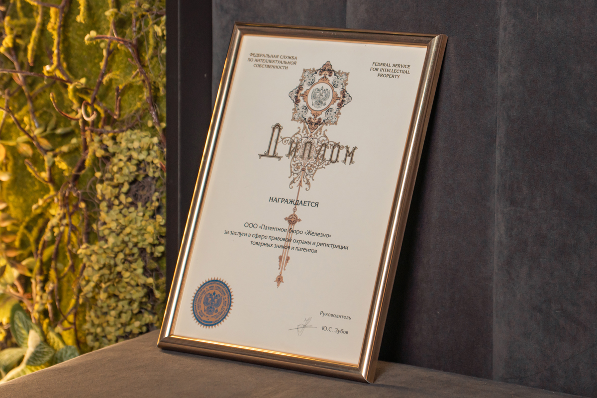 Патентное бюро "Железно” выражает искреннюю благодарность Федеральной службе по интеллектуальной собственности за признание и высокую оценку своей работы!