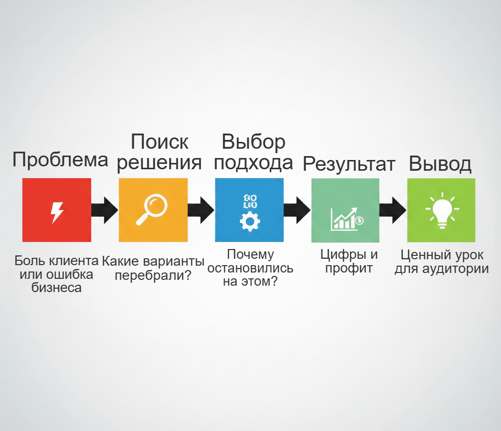 Как надо: «Наш клиент, владелец сети шиномонтажек в Воронеже, каждое утро начинал с того, что вручную перепроверял остатки на складе...». Детали вроде города или специфики бизнеса создают картинку в голове и вызывают доверие.Не бойтесь ошибок: процесс важнее финиша. История без проблем — это хвастовство, а не сторителлинг. Читателя больше интересует путь: какие решения пробовали, что не сработало и почему в итоге вы свернули с протоптанной дорожки. Рассказывайте про ошибки именно в них скрыта самая ценная экспертиза.