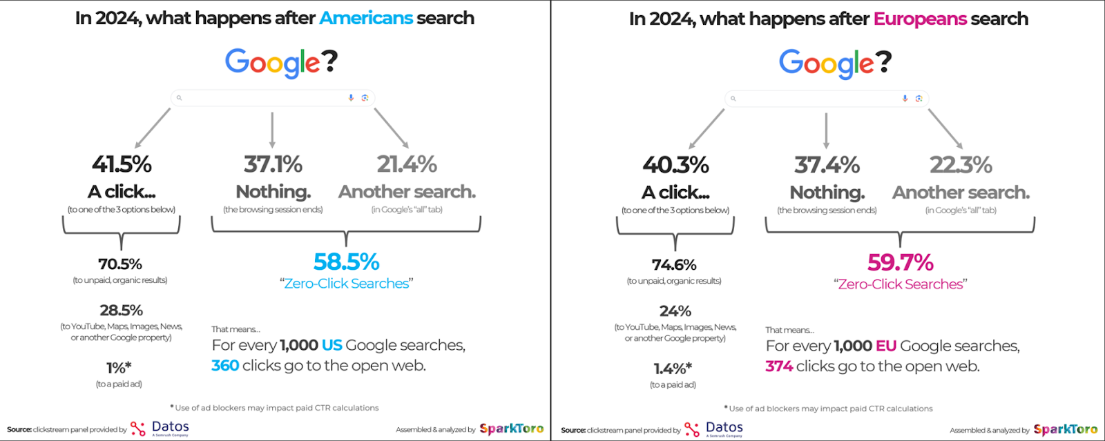 Согласно данным SparkToro, почти 60% пользователей сегодня вообще не переходят на сайты, они принимают решение на основе той краткой справки, которую выдает система. А по данным Edelman, более половины потребителей доверяют выводам алгоритмов больше, чем официальным заявлениям брендов.