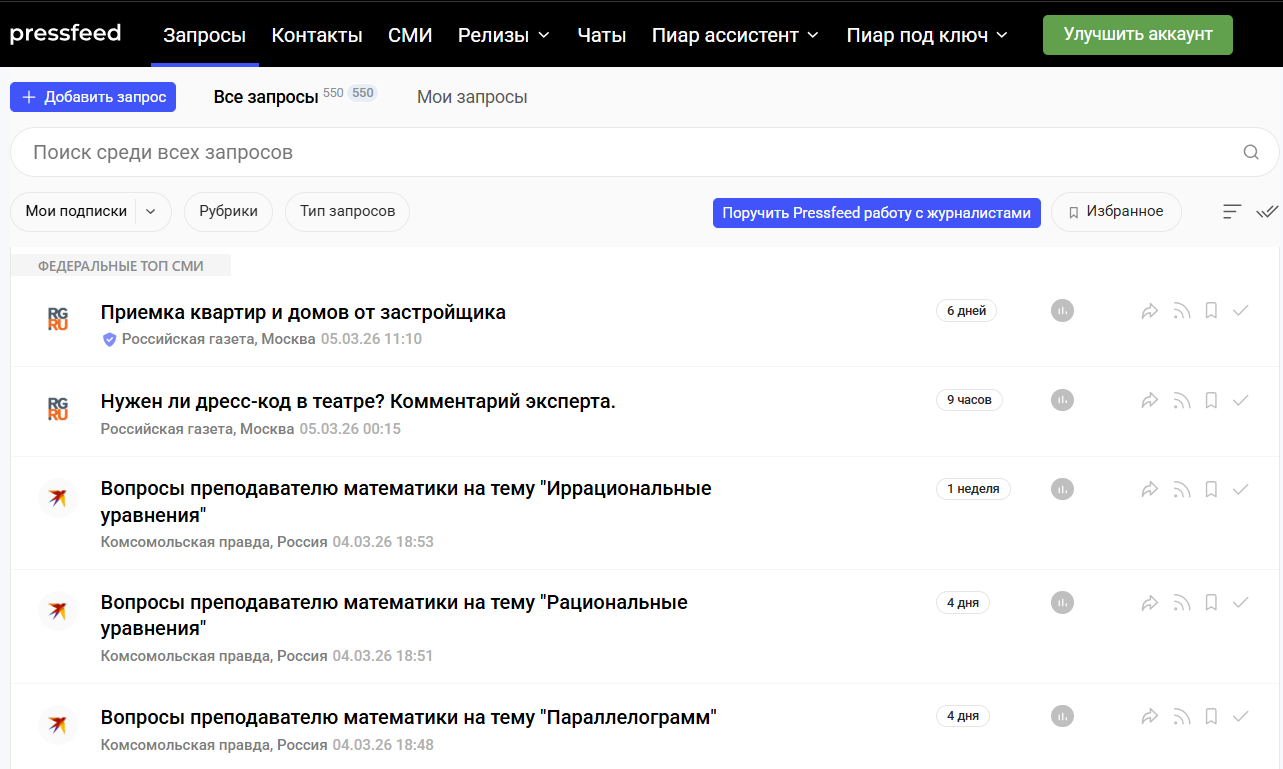 Но как попасть в медиа без бюджета на пиарщиков? Журналисты постоянно ищут живой опыт и мнения практиков. Найти друг друга помогает сервис Pressfeed, где собрано более 15 000 авторов от отраслевых изданий до медиа-гигантов. Вы просто выбираете подходящий запрос по своей теме и отправляете комментарий. Если ваша история или совет подходят, вы становитесь героем материала. Сервис дает три бесплатных питча в месяц, чего вполне хватает для первых публикаций.