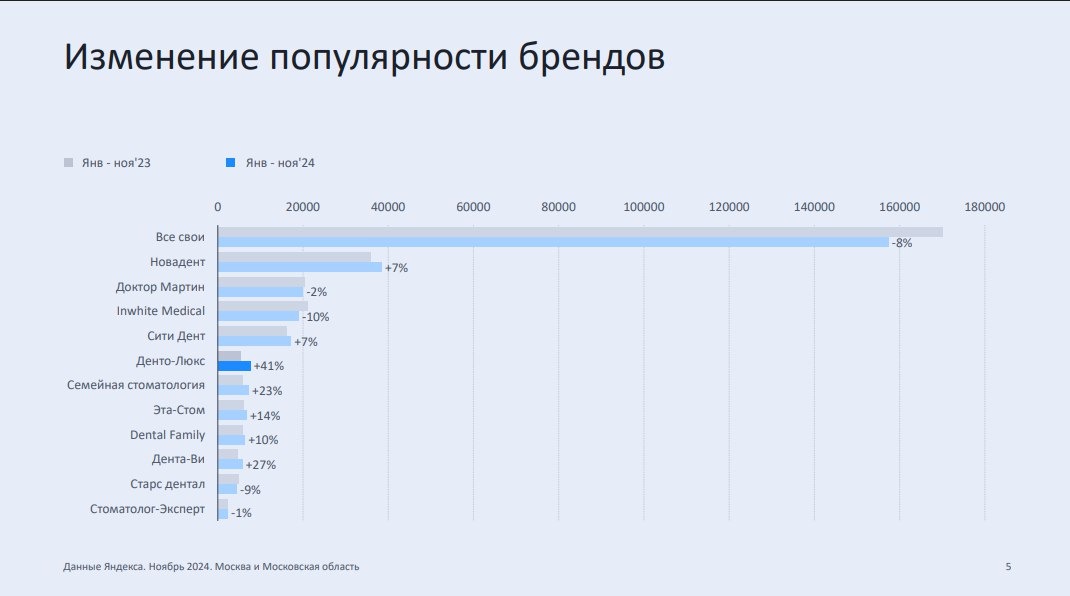 Главный бизнес-результат: медийная активность напрямую повлияла на интерес пациентов. По данным аналитики Яндекса, благодаря системной работе с личным брендом собственника узнаваемость клиники выросла на 40%.