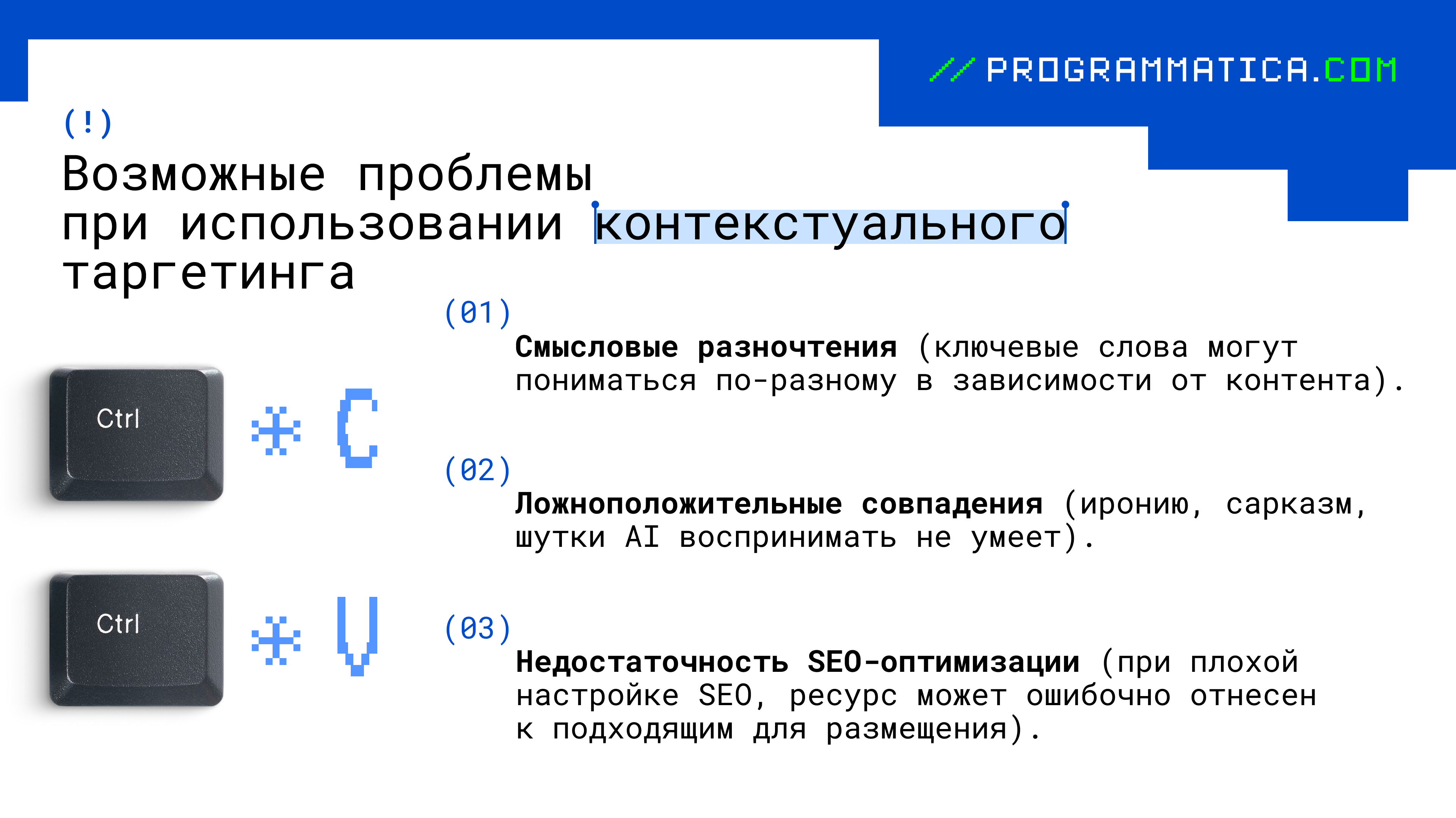 Этот вид таргетинга основан на анализе содержания веб-страницы, на которой предполагается размещение рекламы. Система оценивает тематику сайта с помощью ключевых слов, SEO-оптимизации, заголовков, а также других текстовых и метаданных.