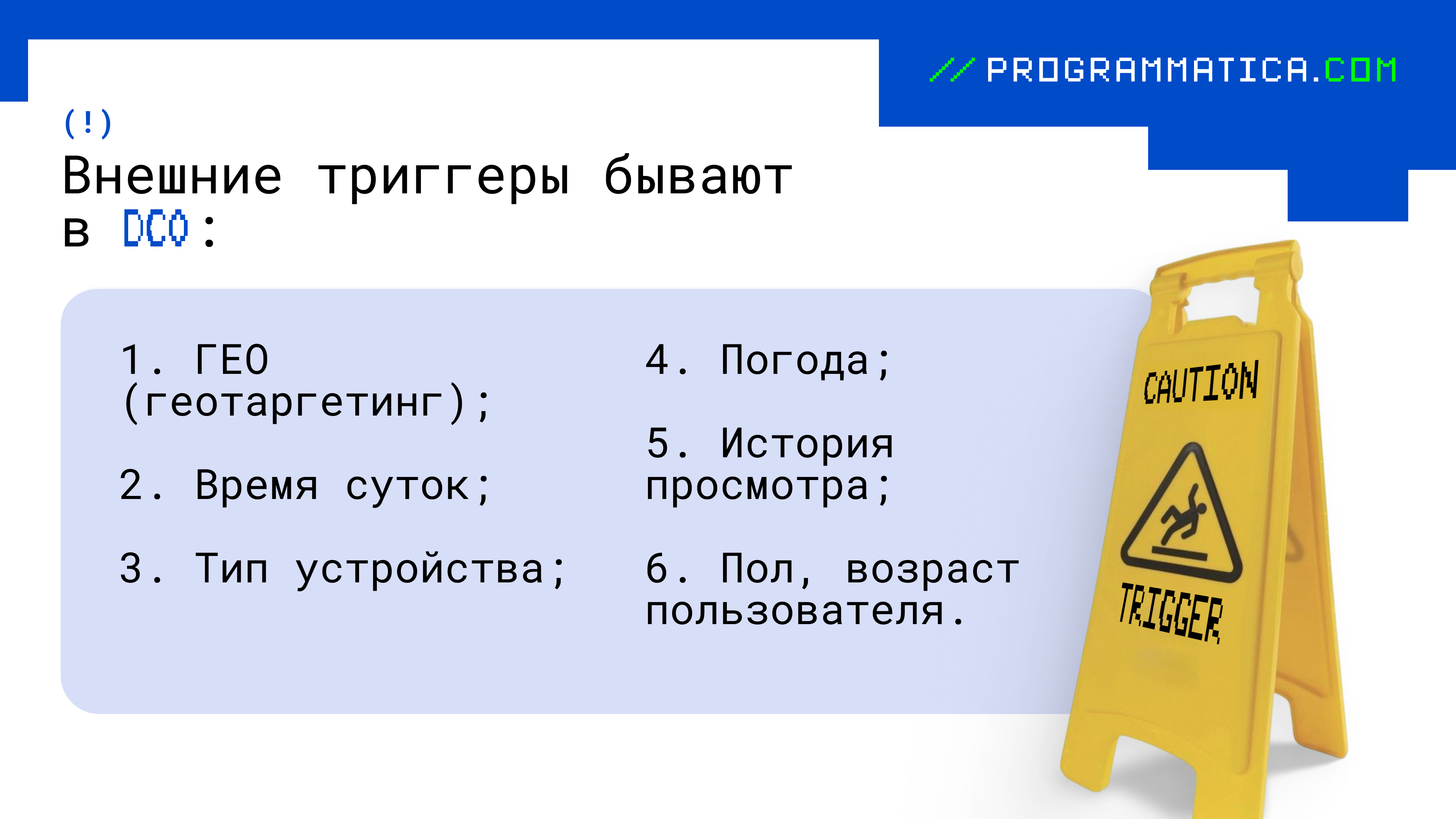 Технология, позволяющая адаптировать рекламное объявление в режиме реального времени в зависимости от внешних условий (триггеров). Такие изменения позволяют формировать персонализированные креативы, которые максимально соответствуют текущему контексту и интересам конкретного пользователя.