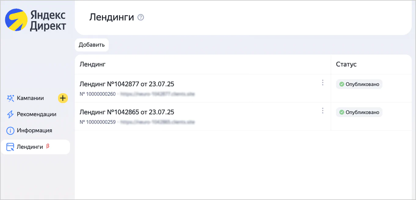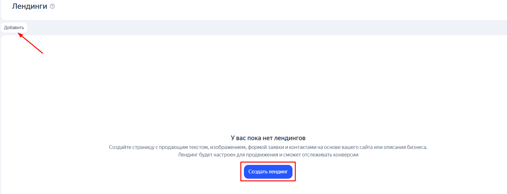 Мы уже упомянули, что бесплатные лендинги доступны в обеих версиях рекламного кабинета — стандартном Директе и Директе Про.