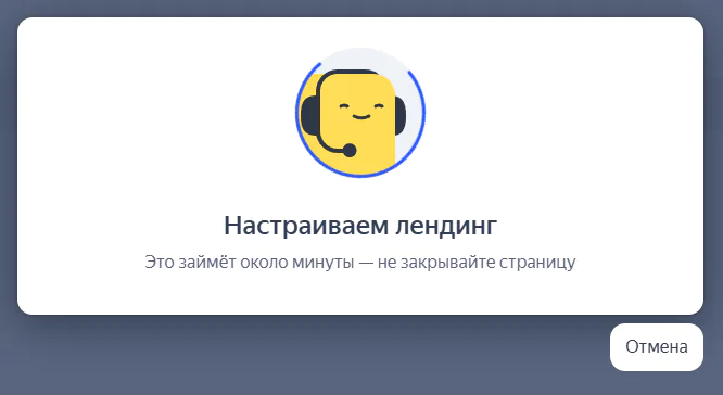 Нажимаем «Создать лендинг» и ждем, когда закончится процесс генерации.