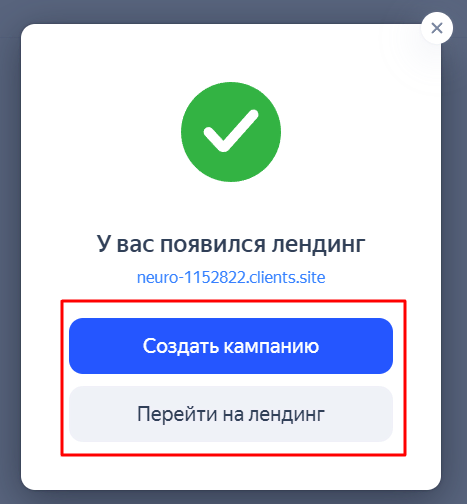 После сохранения можно сразу запустить рекламу или перейти на лендинг: