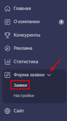 Заявки будут приходить в раздел «Форма заявки» кабинета Яндекс Бизнеса.