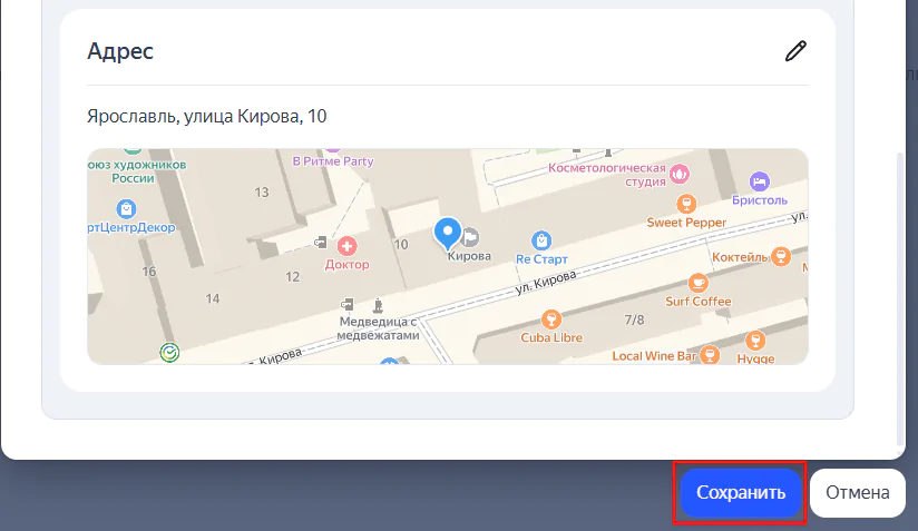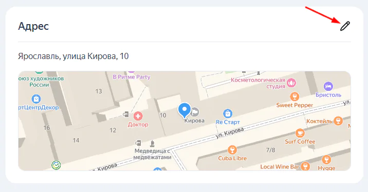 На следующем шаге нужно, как и в первом варианте, добавить организацию из Яндекс Бизнеса. Если профиль правильно заполнен, компания подтянется автоматически: