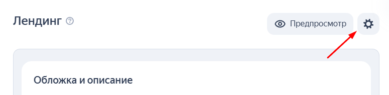 Кликнув на значок шестеренки, попадем в настройки лендинга: