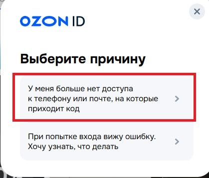 3. Написать номер телефона или почтового ящика, которыми вы когда-либо пользовались для входа на Ozon (даже если они больше не прикреплены к текущему аккаунту). На них придёт код или письмо для подтверждения.