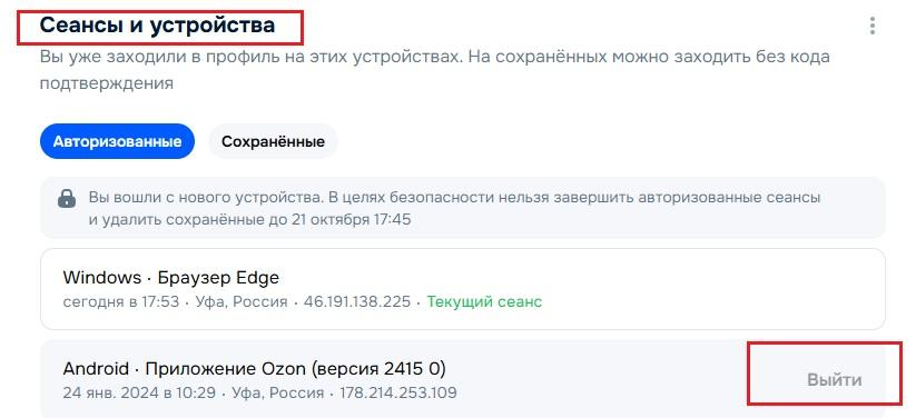 Когда вход в Ozon восстановлен, выполните несколько действий для безопасности:
