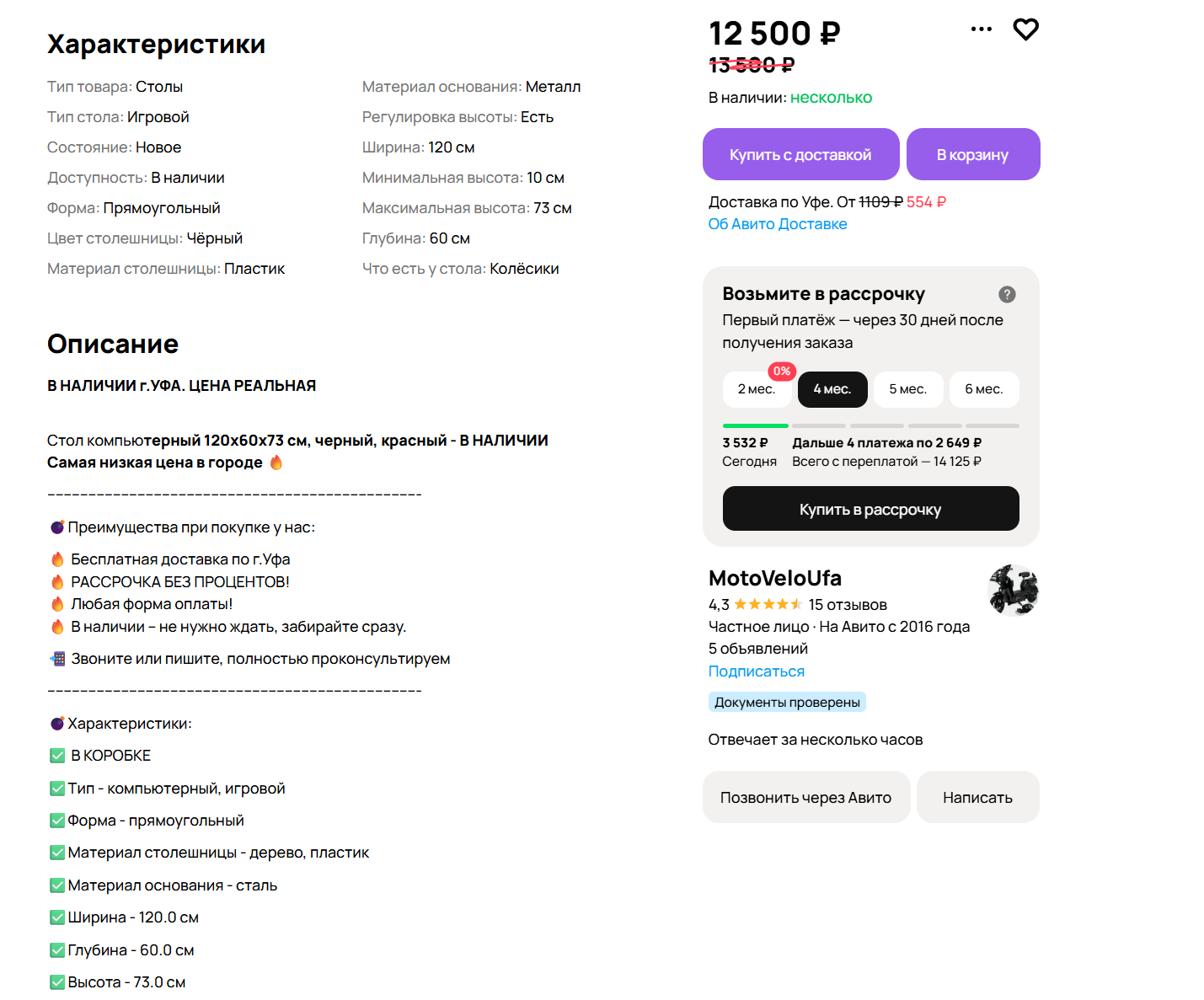 Выберите несколько объявлений с максимальным числом просмотров и детально изучите их оформление: фотографии, структуру описания, указание характеристик, наличие скидок, рассрочки или доставки. Это поможет понять, какие элементы напрямую влияют на конверсию именно в вашей нише.