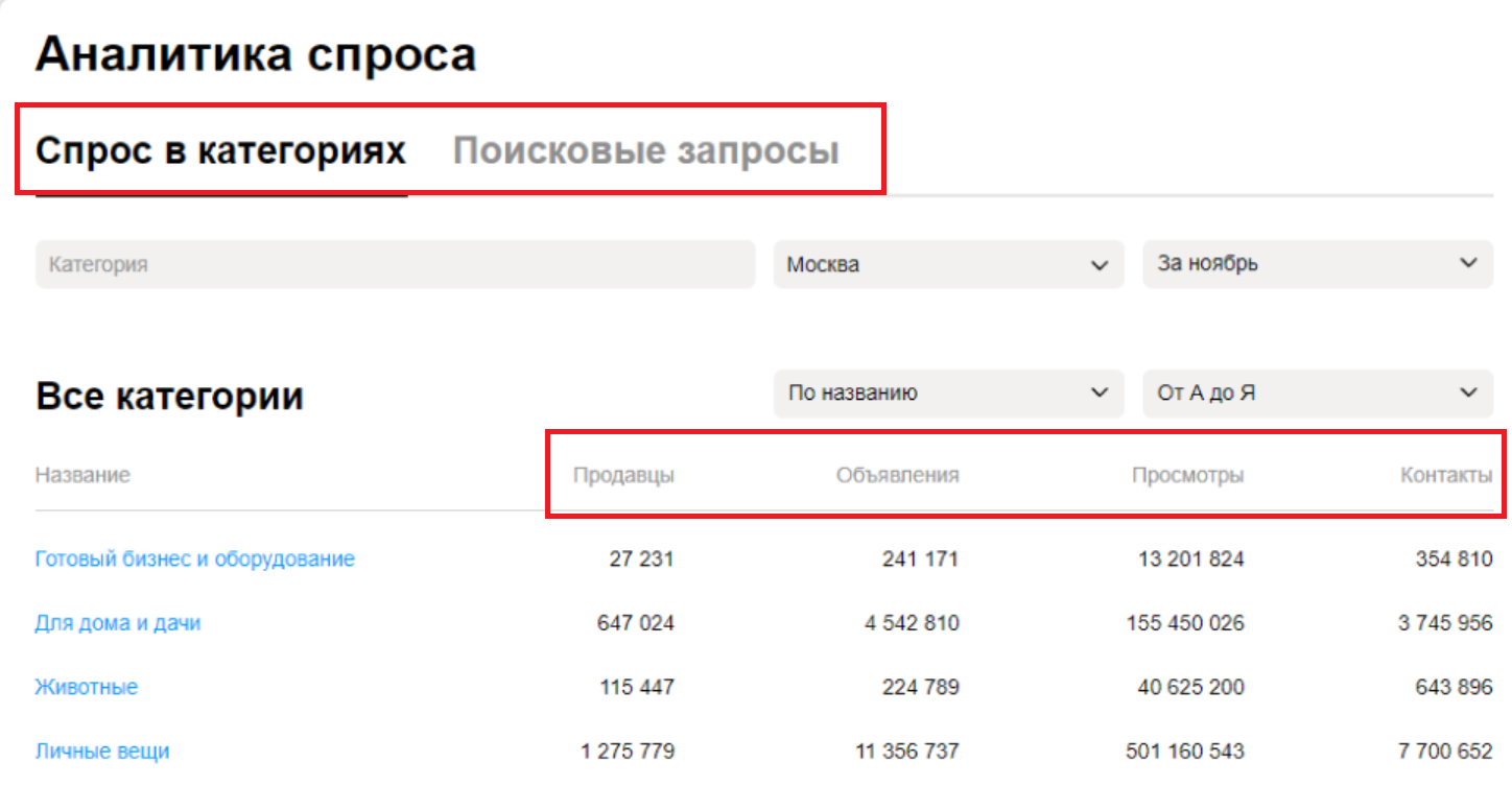 У Авито есть встроенный сервис «Аналитика спроса», который показывает: