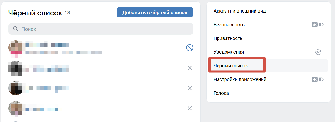 Использовать чёрный список