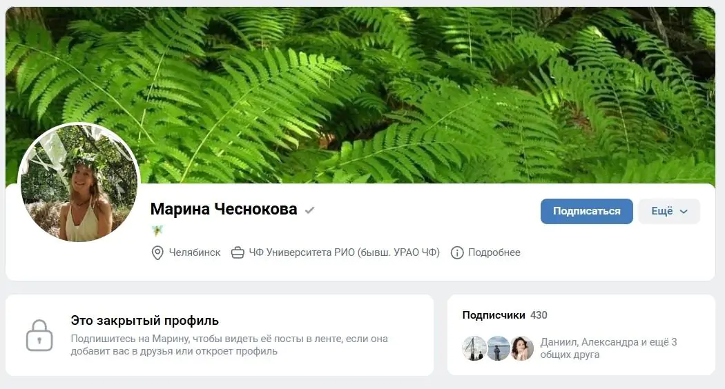 Как выглядит закрытый профиль во ВКонтакте