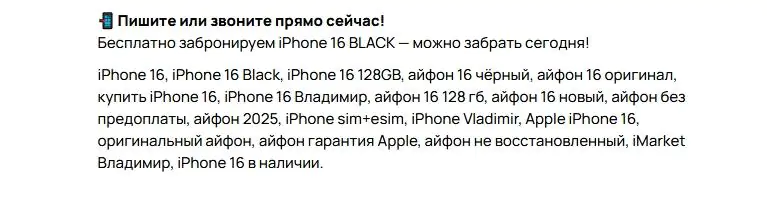 Добавьте мягкий призыв к действию. В конце описания уместна аккуратная мотивация — без давления и настойчивости. Например: «Скидка 1000 ₽ до 20 февраля» или «При покупке сегодня — бесплатная доставка и скидка 10%».