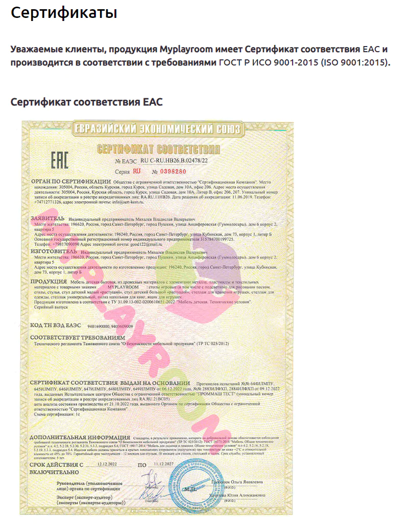 разместите сертификаты и документы, если продукция подлежит сертификации;