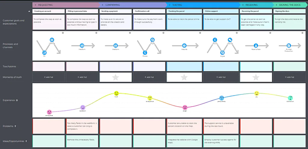 Структурированные данные лучше визуализировать — в таблице или специализированном сервисе, например в UXPressia или Visual Paradigm. Визуальная карта пути клиента помогает быстрее определить слабые зоны воронки продаж и расставить приоритеты оптимизации.