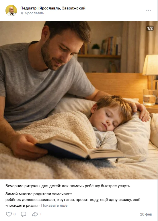 Например, страница частного педиатра может публиковать рекомендации для родителей или разбор распространенных детских заболеваний.