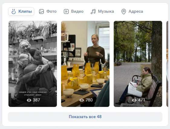 Если тематика группы позволяет регулярно снимать короткие ролики — например, советы, демонстрацию продукта или фрагменты рабочего процесса — стоит активно использовать этот формат.