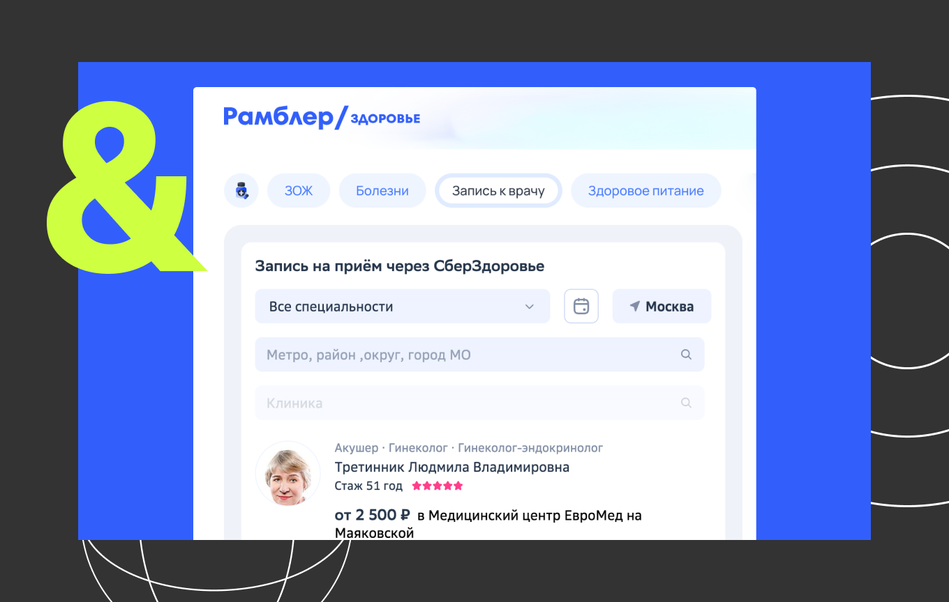 Rambler.ru (входит в медиахолдинг Rambler&Co) в партнерстве с медицинской компанией СберЗдоровье запустил онлайн-запись к врачу прямо на собственном портале. Эта возможность появилась в разделе «Рамблер/здоровье» и позволяет пользователям всего в несколько кликов записаться на прием, выбрав врача и клинику с учетом рейтингов и отзывов, удобное время, подходящую стоимость визита. Все данные о врачах и медицинских учреждениях предоставляются партнером и регулярно обновляются.