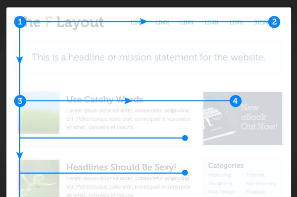 Исследование, проведенное в 2006 году известным специалистом в области интерфейсов Якобом Нильсеном, установило один интересный факт: если пользователь серфит интернет без какой-либо конкретной цели, его взгляд скользит по монитору по определенной траектории, которая сильно напоминает английскую букву F.