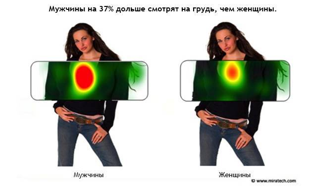 Наверное, вы уже знаете, что люди практически всегда смотрят на лицо, грудь и область гениталий. Это общеизвестный факт, которым часто пользуются рекламщики. Но то, о чем мы хотим вам поведать далее, наверняка будет для вас неожиданностью.