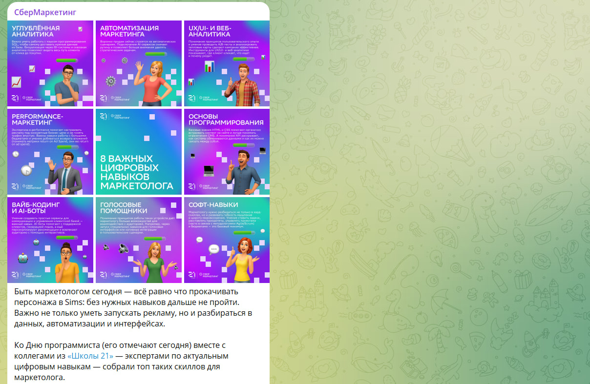 В 2025 году СберМаркетинг запустил спецпроект экспертных коллабораций в Telegram-канале компании. Инициатива была направлена на преобразование канала из источника новостей в авторитетную отраслевую площадку, которая предлагает аудитории практическую пользу и поддерживает устойчивый интерес. Об особенностях и результатах проекта — рассказали участники кейса.