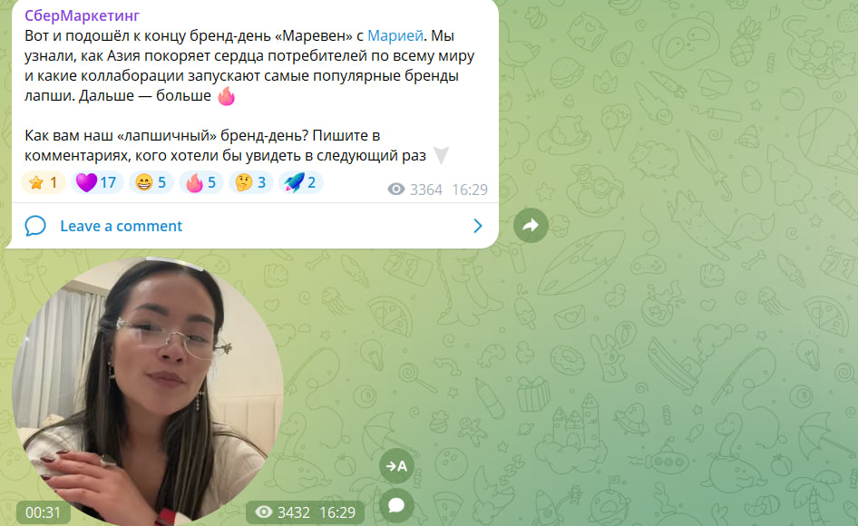 В 2025 году вышли совместные публикации с брендами Школа 21, «Самокат», ГигаЧат, Нетология, Ozon, Cloud.ru, СберУниверситет, проведены бренд-дни со «Столото», Mareven, AI Journey 2025, Askona, «Май». Благодаря комплексному подходу к экспертным коллаборациям были достигнуты прогнозируемые результаты.
