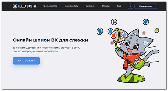 - Зайти на сайт ВКшпион – нажать сверху: «Начать слежку».