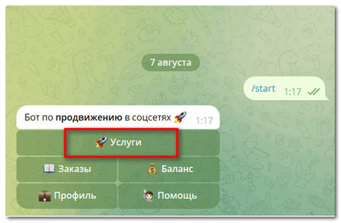 Вначале посмотрим, какие услуги предоставляет бот и выберем те, которые подходят под нашу задачу: