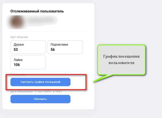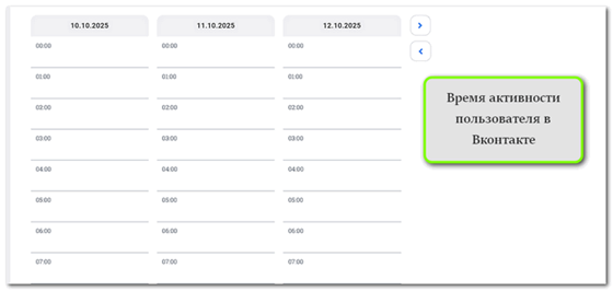 Трекер онлайна – удобная функция, показывающая когда пользователь был в сети. Сверху вы можете отсортировать на дневное и ночное время. В позднее время владельцы блогов и экспертных страниц редко делятся постами. И ваша задача определить, когда именно нет записей. На основе этого можно составить свой график и размещать посты для аудитории, когда у конкурента перерыв. Идеально подходит для проверки аккаунтов в ВК на разные виды активностей.