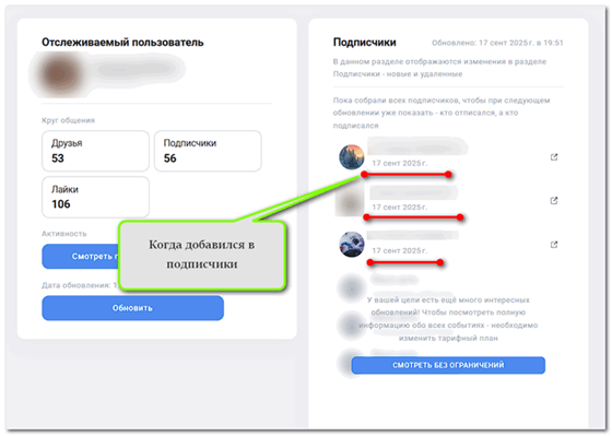 В разделах «Подписчики» и «Друзья» можно выставить фильтры, которые покажут взаимные действия и время, когда новый пользователь был добавлен. То же и с лайками: посмотреть активность полученную и отправленную.