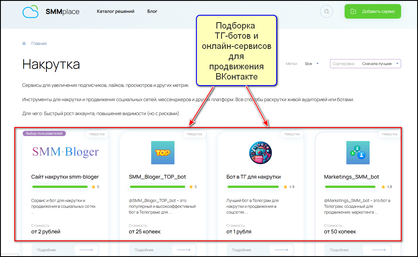Каталог полезных ресурсов для маркетинга, в котором вы найдете подборку телеграм-ботов и онлайн сервисов для раскрутки соцсетей. Каждый из ее представителей проверен, надежен и безопасен, предлагает услуги по низким ценам.