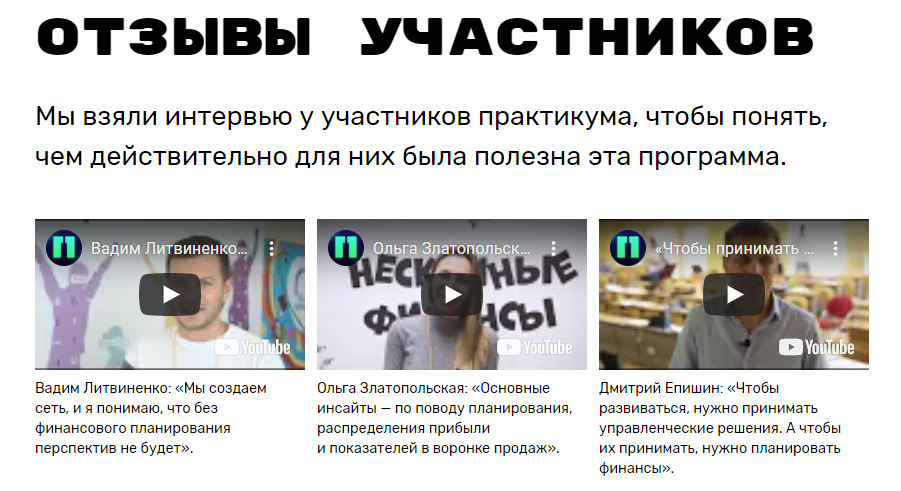 Чтобы укрепить доверие, собрали видеоотзывы заказчиков и опубликовали их на сайте.