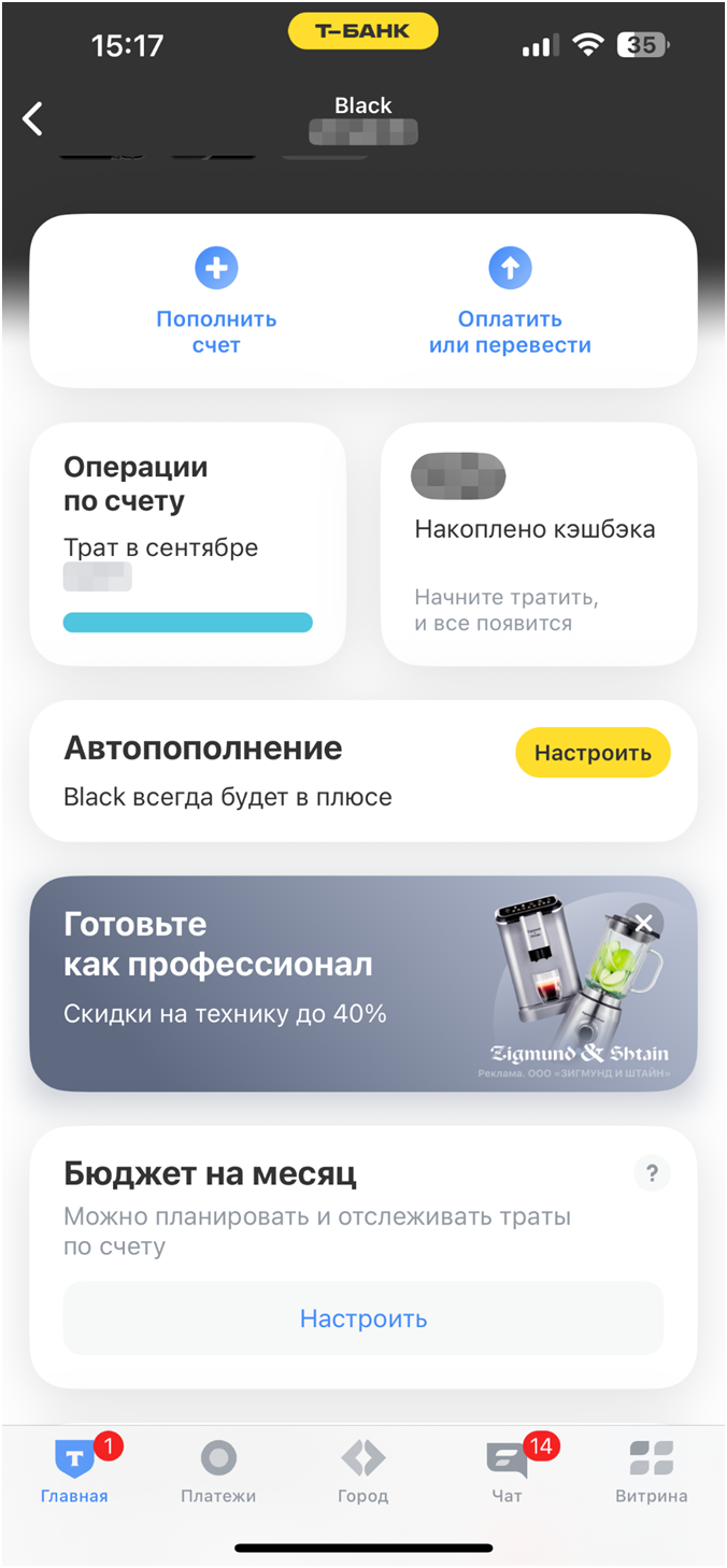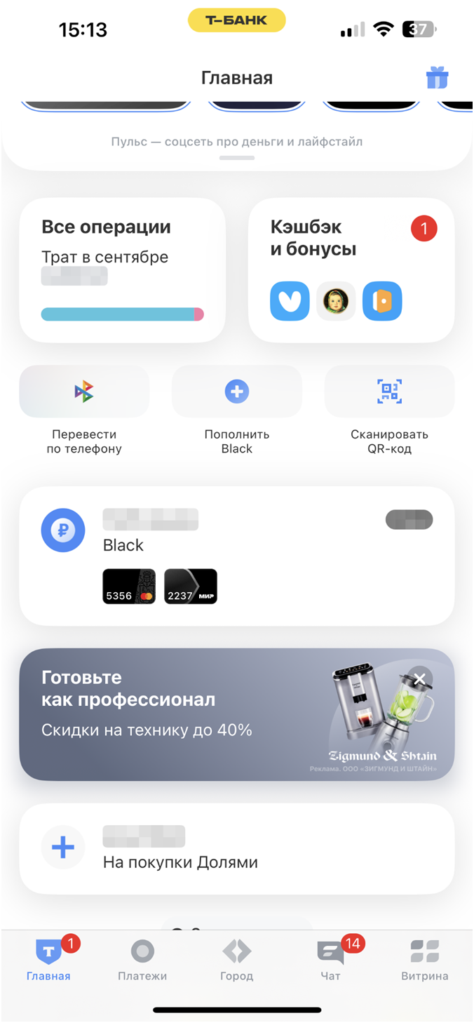 есть точные сценарии контакта: главный экран, история операций, детали счета, раздел «Кэшбэк и бонусы»;